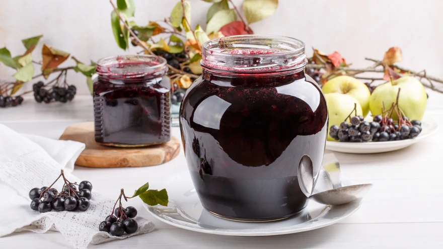 Puhasta ja tükelda õunad, puhasta arooniad vartest ja pane koos veega potti. Keeda kümme minutit, riisu vaht. Purusta saumikseriga püreeks.