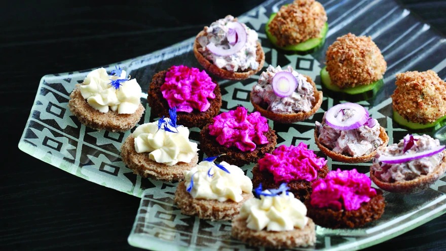 2. Serveerimiseks lõika rukkileivast väikesed kettad. Tõsta igale rukkileivale veidi peedikreemi või suru peedikreem leivaviiludele kondiitripritsi abil.