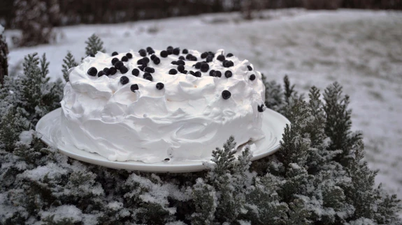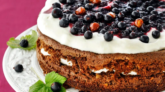 Määri peale rabarberikeedist ja kreemi. Seejärel lao teine kiht küpsiseid, määri peale rabarberikeedist. Pane ülejäänud kreem kilekotti, lõika nurk ära ja vajuta kreem koogile. Sõelu peale kakaopulbrit.
