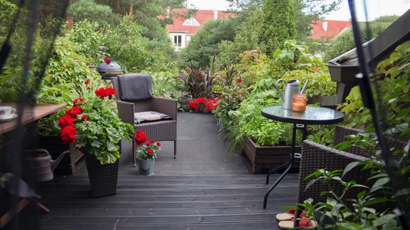 Ridaelamu otsaboksis on perel lausa kaks aeda: üks maa peal ja teine suurel rõdul....