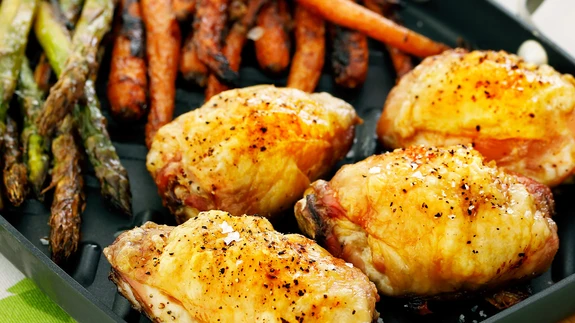 Tegelikult sobib see retsept pigem porgandite kui kana jaoks. Kana võib olla nii poest ostes juba valmis maitsetatud või siis lihtsalt soola-pipraga maitsestatud ja oliiviõliga peitsitud, nagu meil fo...
