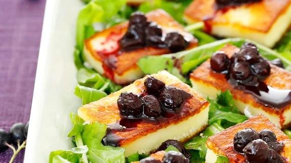 Selle sooja salati valmistamisel võib kasutada Küprose halloumi-juustu, aga sama hästi sobivad ka kodumaised kitse- ja/või lehmapiimast praejuustud. Väiketootjatest soovitame nt Kalamatsi meierei kits...